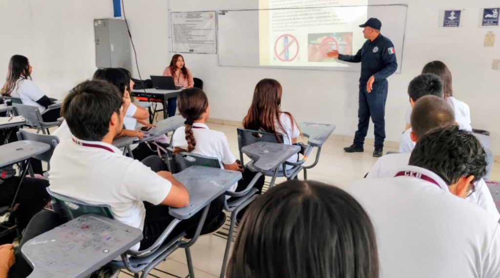 Con el objetivo de promover una cultura de prevención y concientización entre las y los jóvenes, la Dirección de Programas Preventivos de la Secretaría de Seguridad Pública Municipal impartió una plática informativa a las alumnas y alumnos de la Preparatoria Joaquín Baranda, ubicada en la colonia Maximiliano R. López.